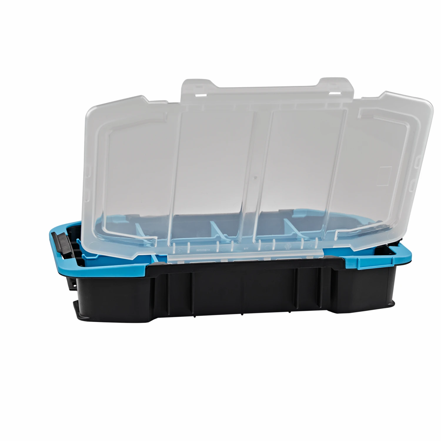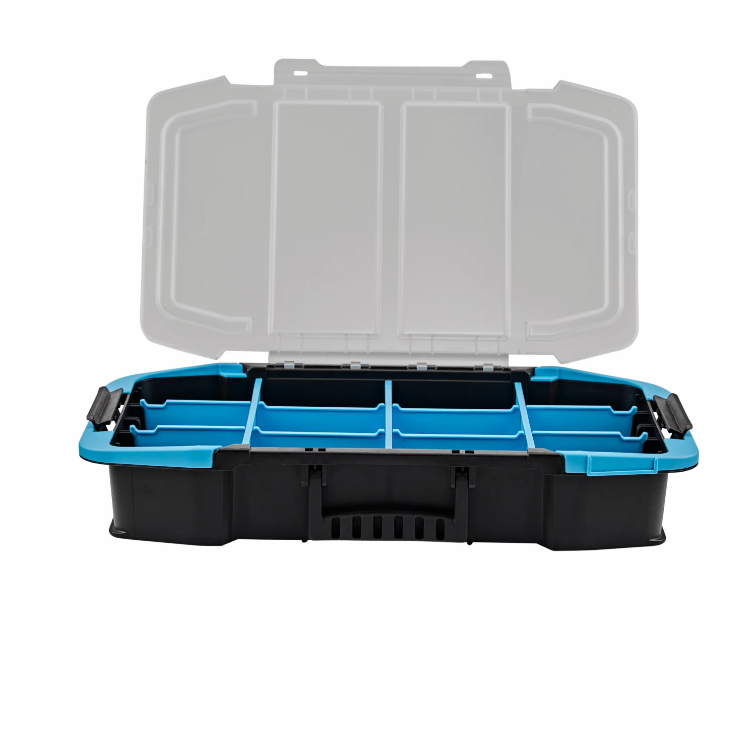The BLACK+DECKER® 19 inch stackable organizer clips onto the caddy base and features adjustable dividers. A built-in handle is also included.