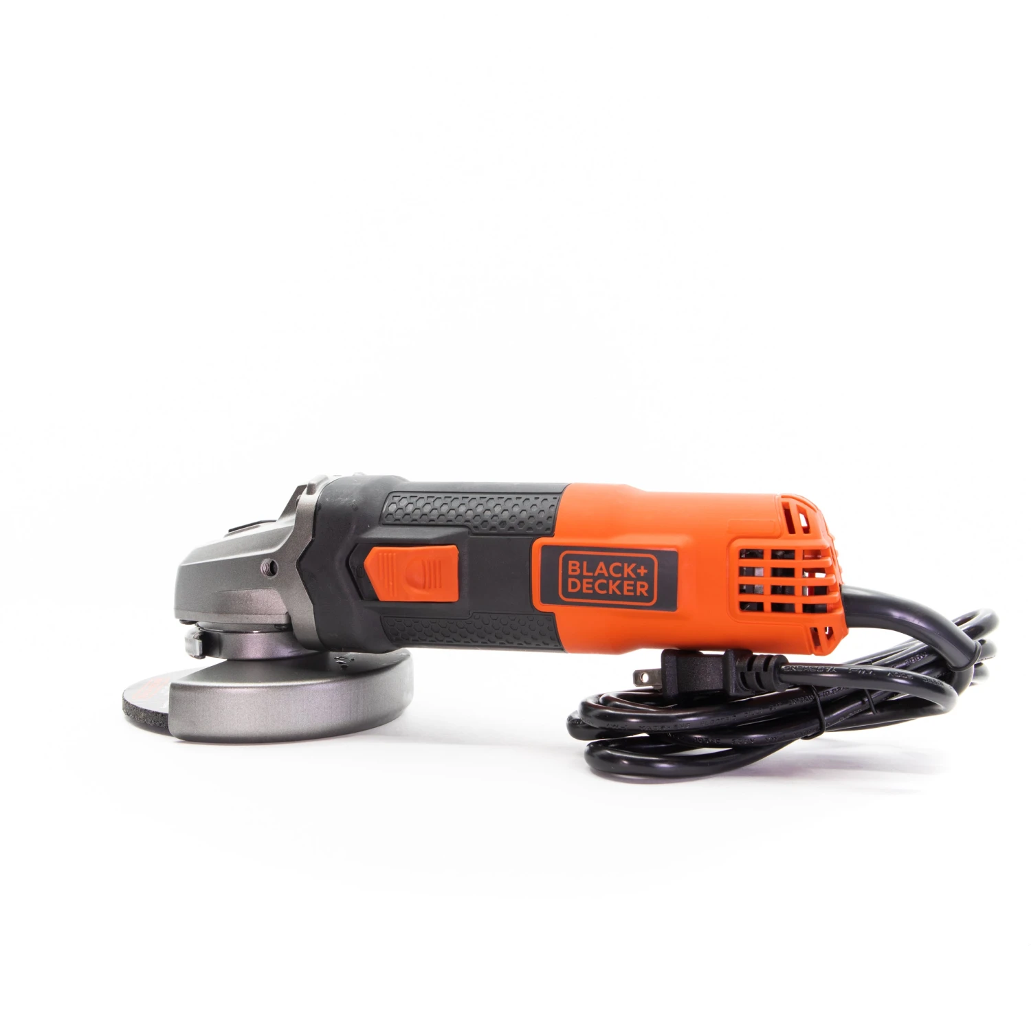 The BLACK+DECKER® BDEG400 4-1/2″ 6 Amp angle grinder includes a metal gear case and a 3-position side handle. It operates at 10,000 rpm (rotations per minute), with a spindle size range of 5/8″ – 11 “.