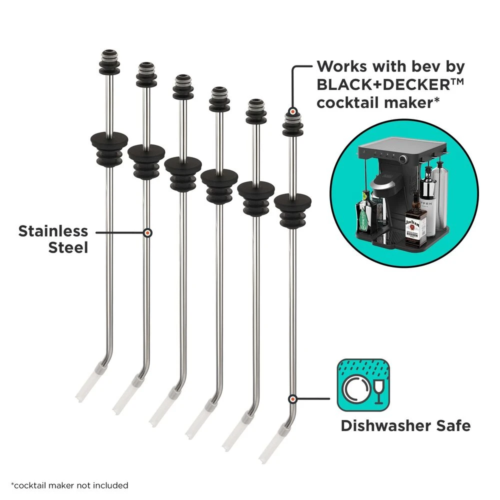 Enhance your experience while using the bev by BLACK+DECKER™ cocktail maker (sold separately) with this pack of 6 replacement straws that draw liquid from the water dispenser & liquor bottles. For 21+. Drink responsibly.
