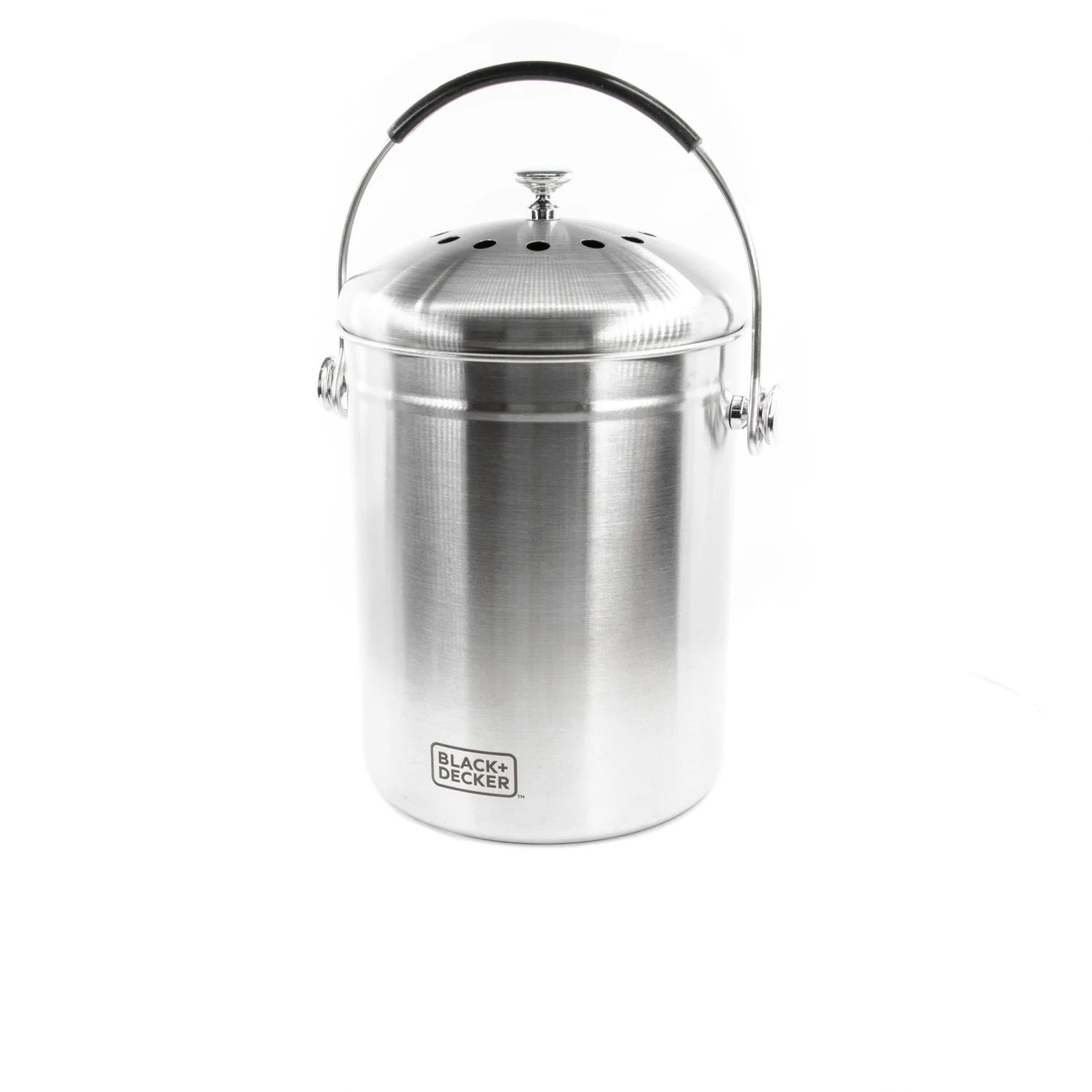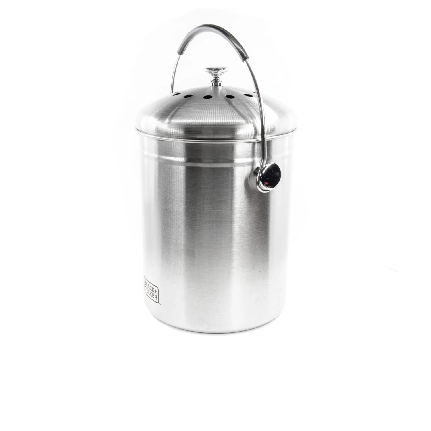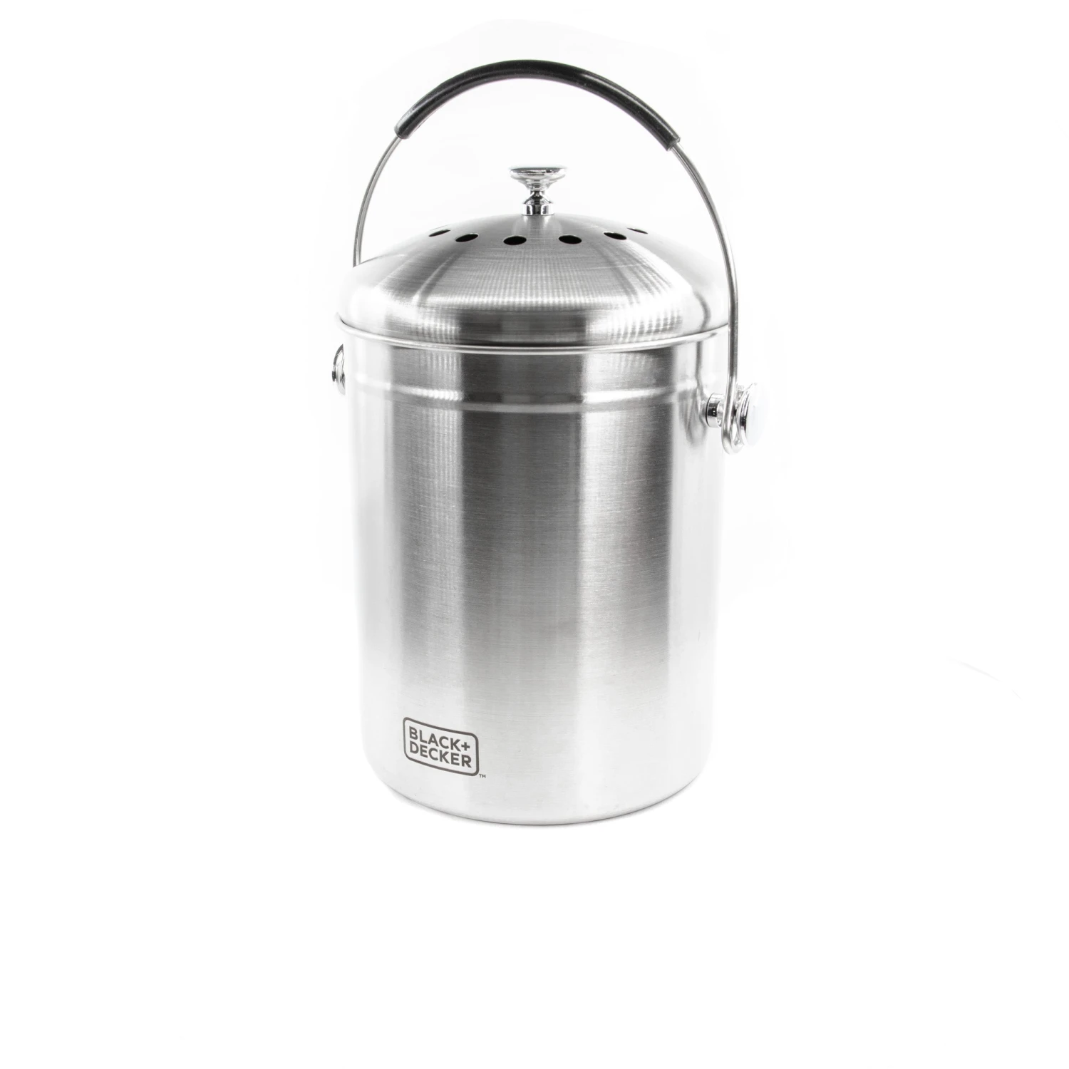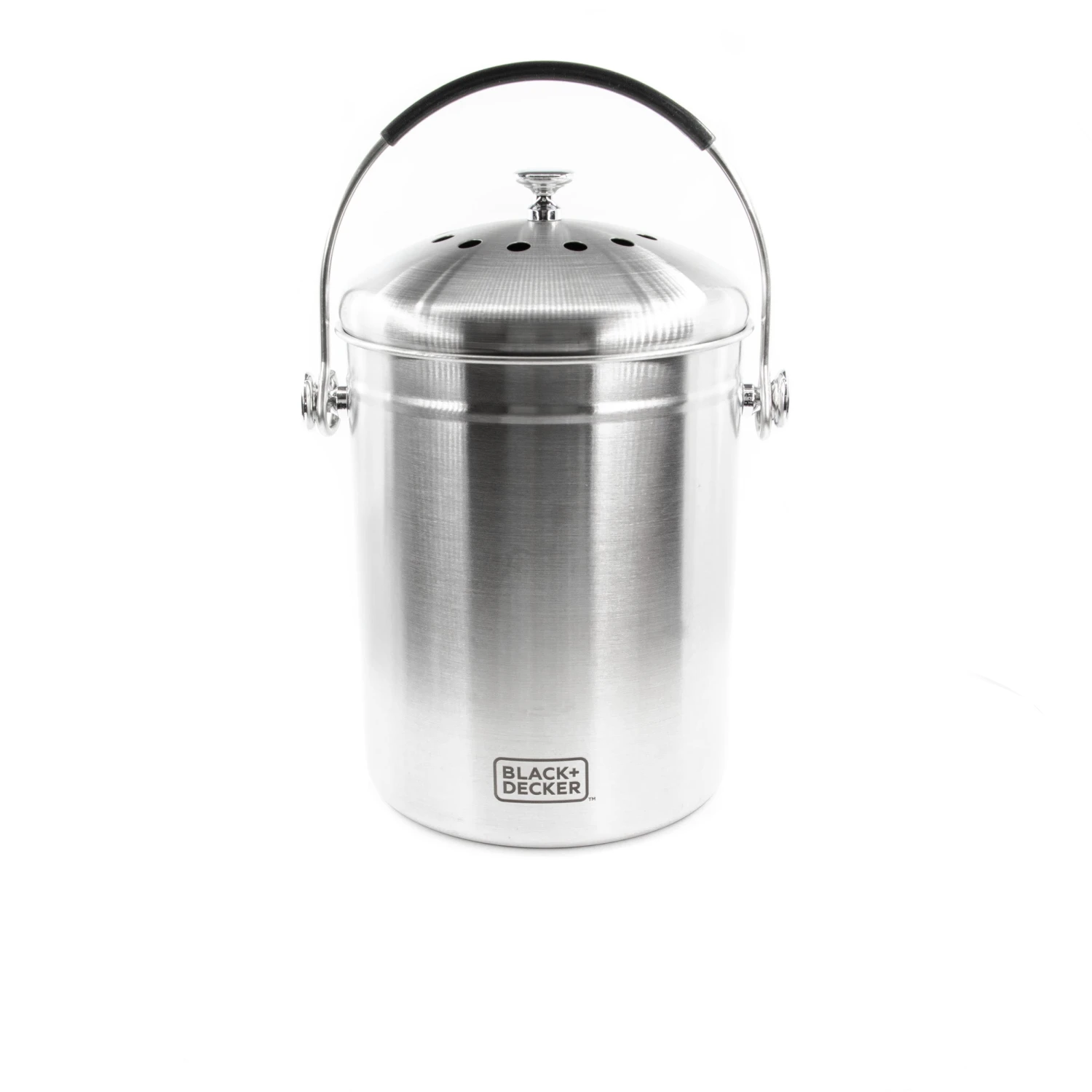 Reduce waste with the BLACK+DECKER® countertop compost bin. It also looks good while doing it. Made from stainless steel, the silver bin mixes well with any decor and discretely holds food scraps until you’re ready to transfer them to an outdoor compost area.