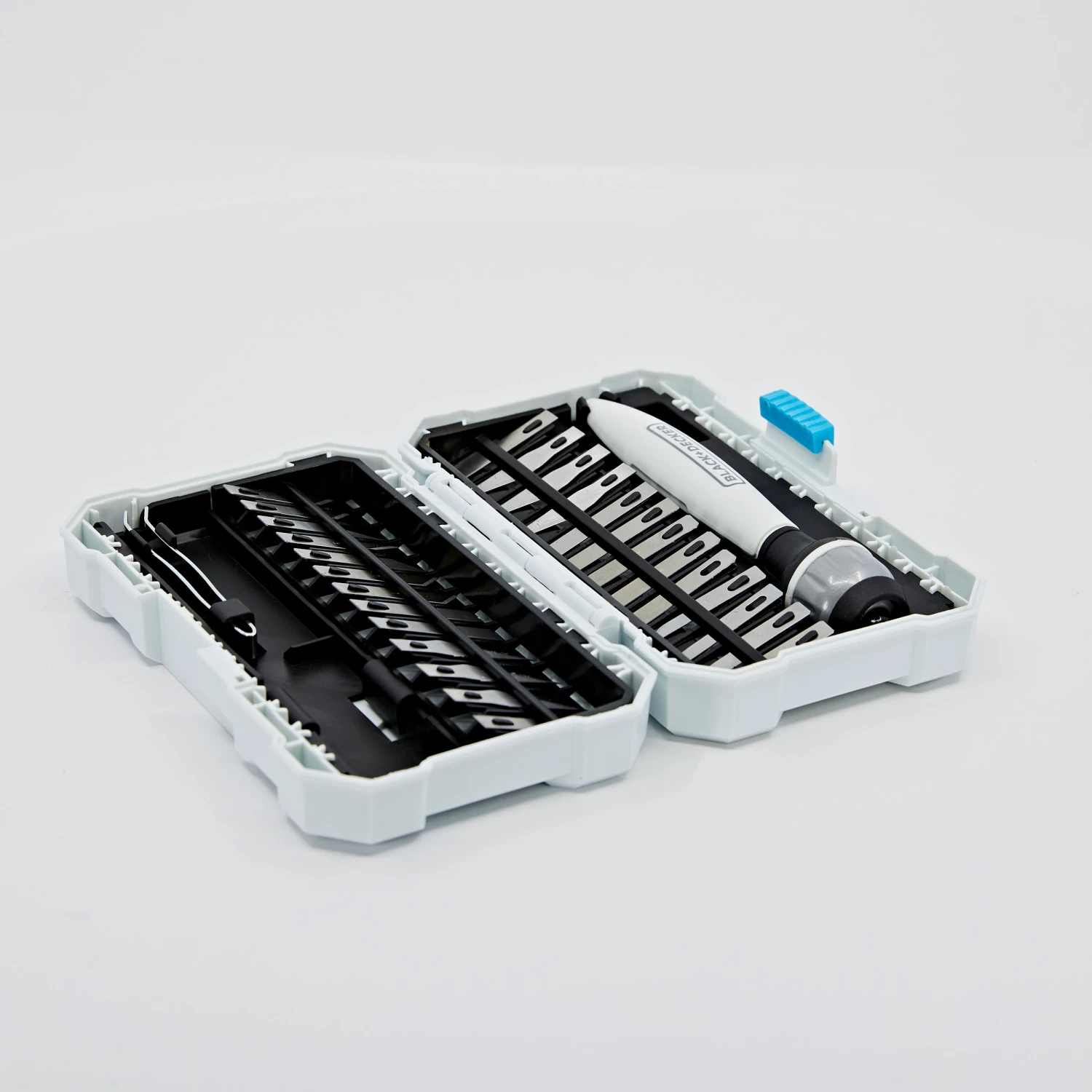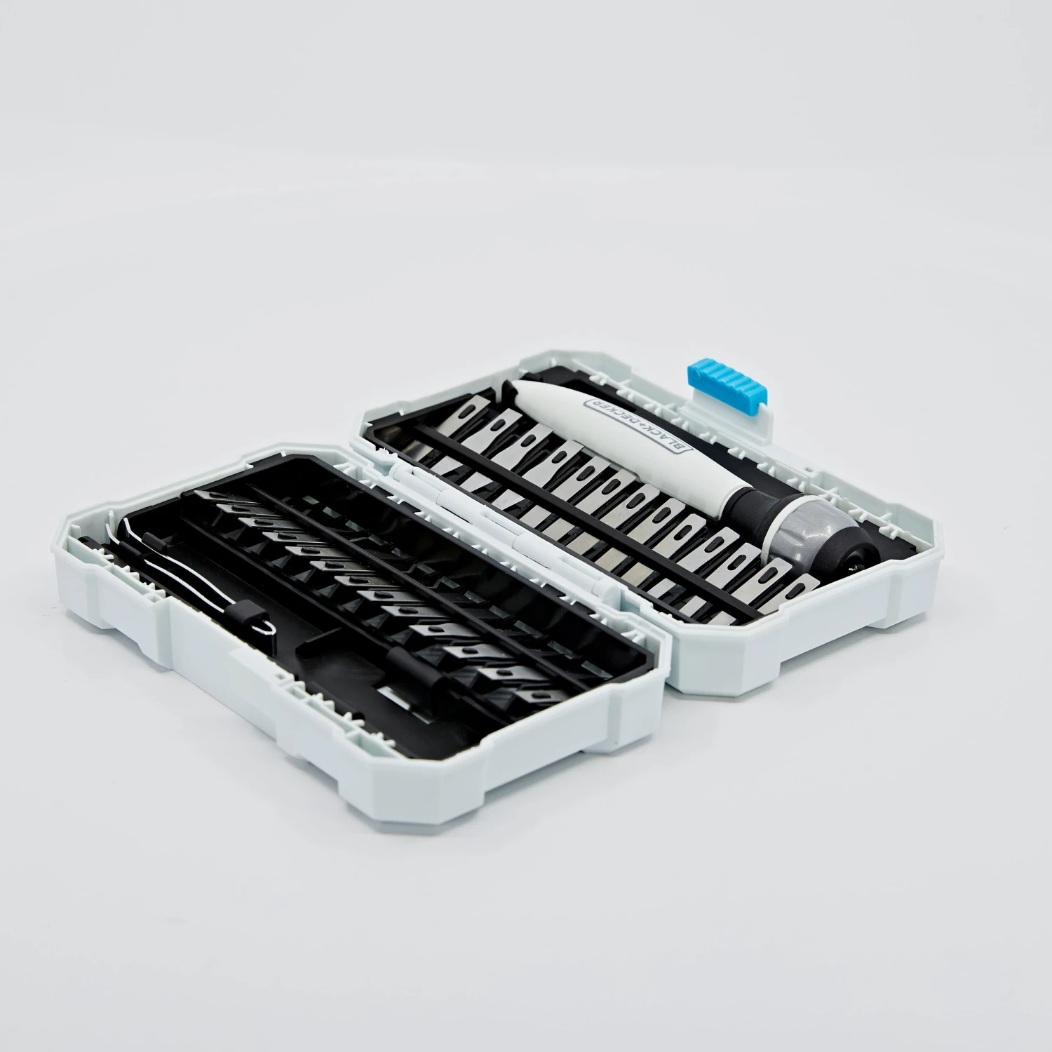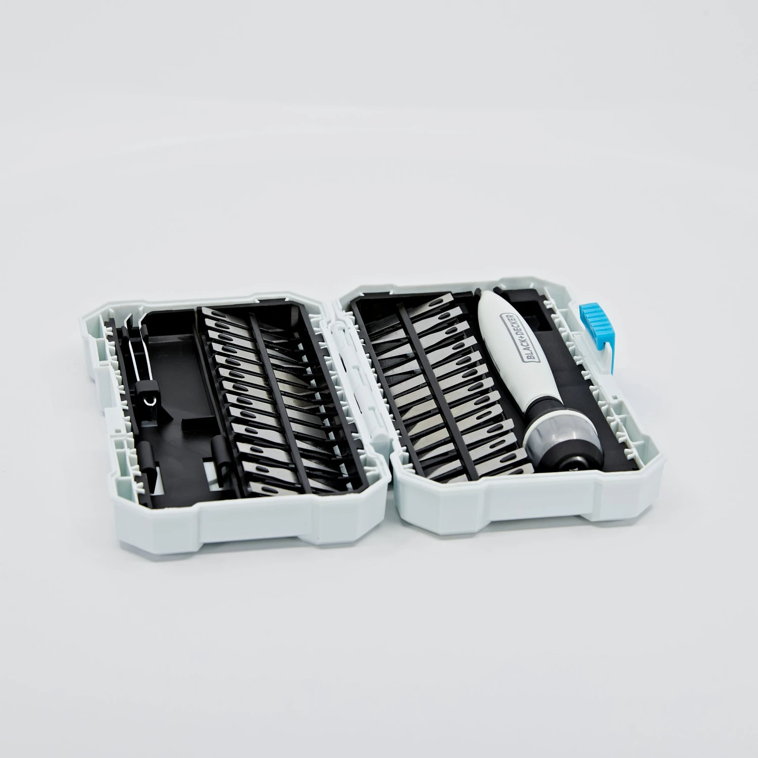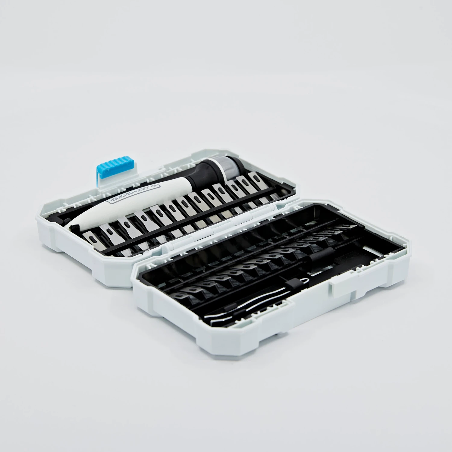 Cut various materials with the BLACK+DECKER® hobby Knife kit. This functional set will fit comfortably in your hand as one of the 26 assorted blades completes accurate cuts.