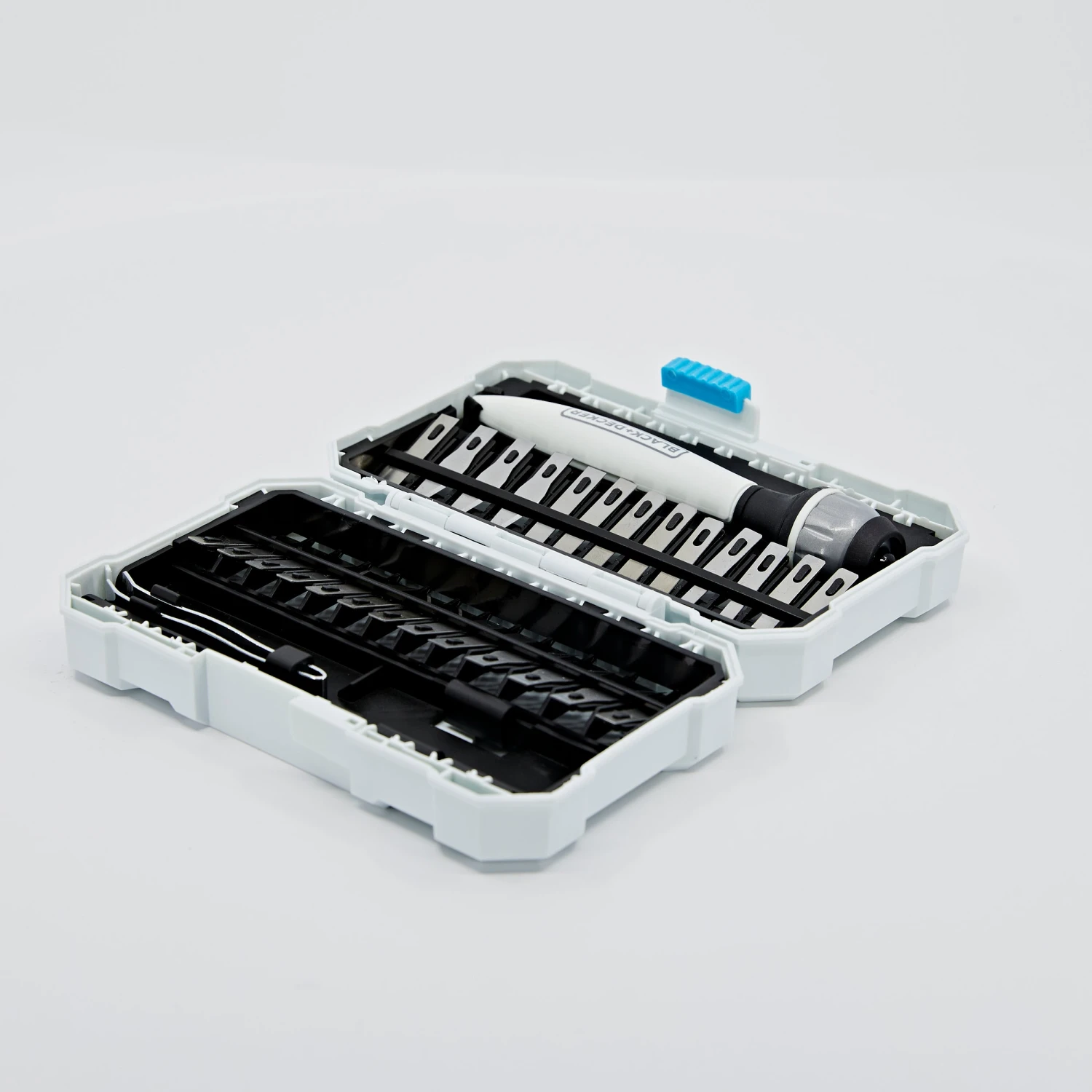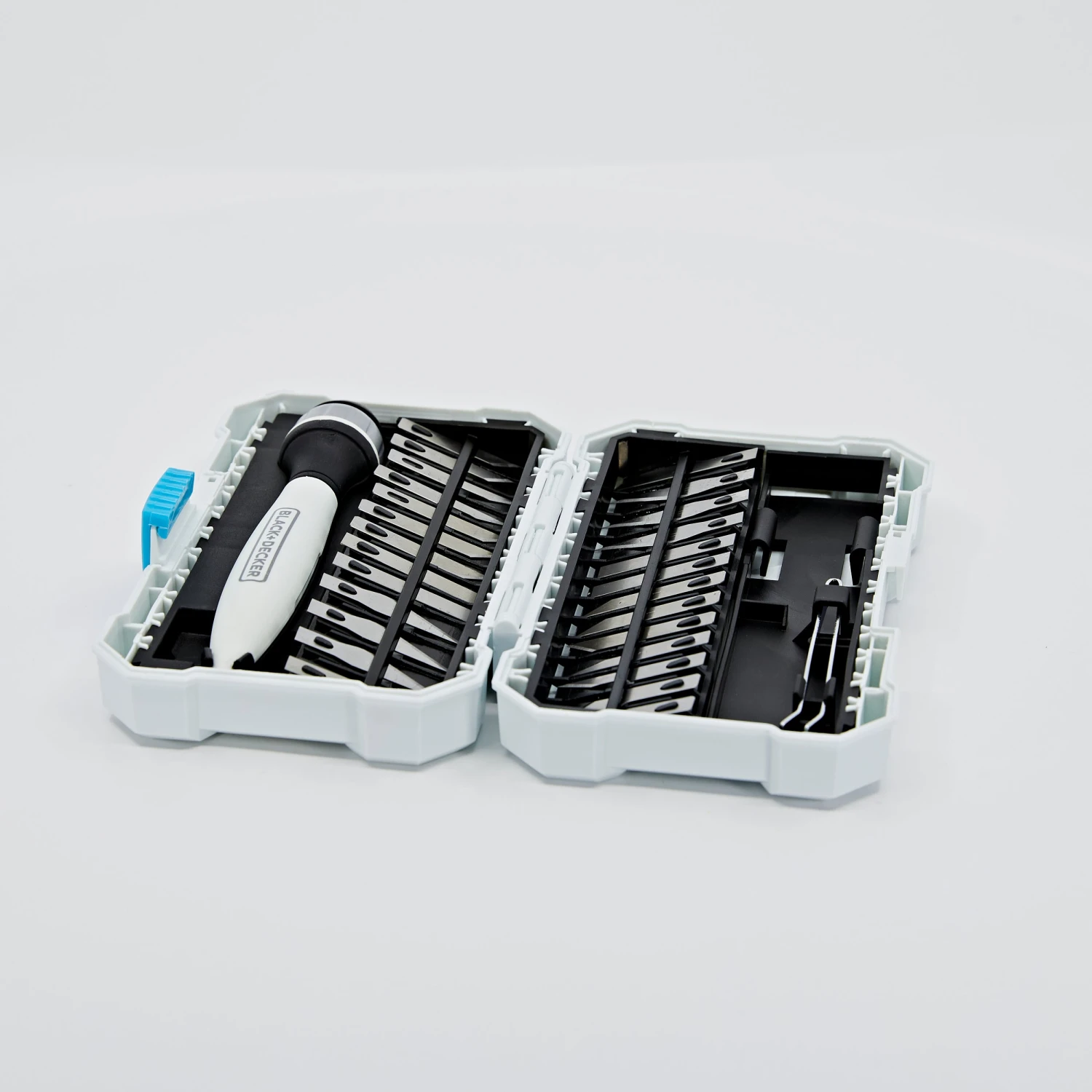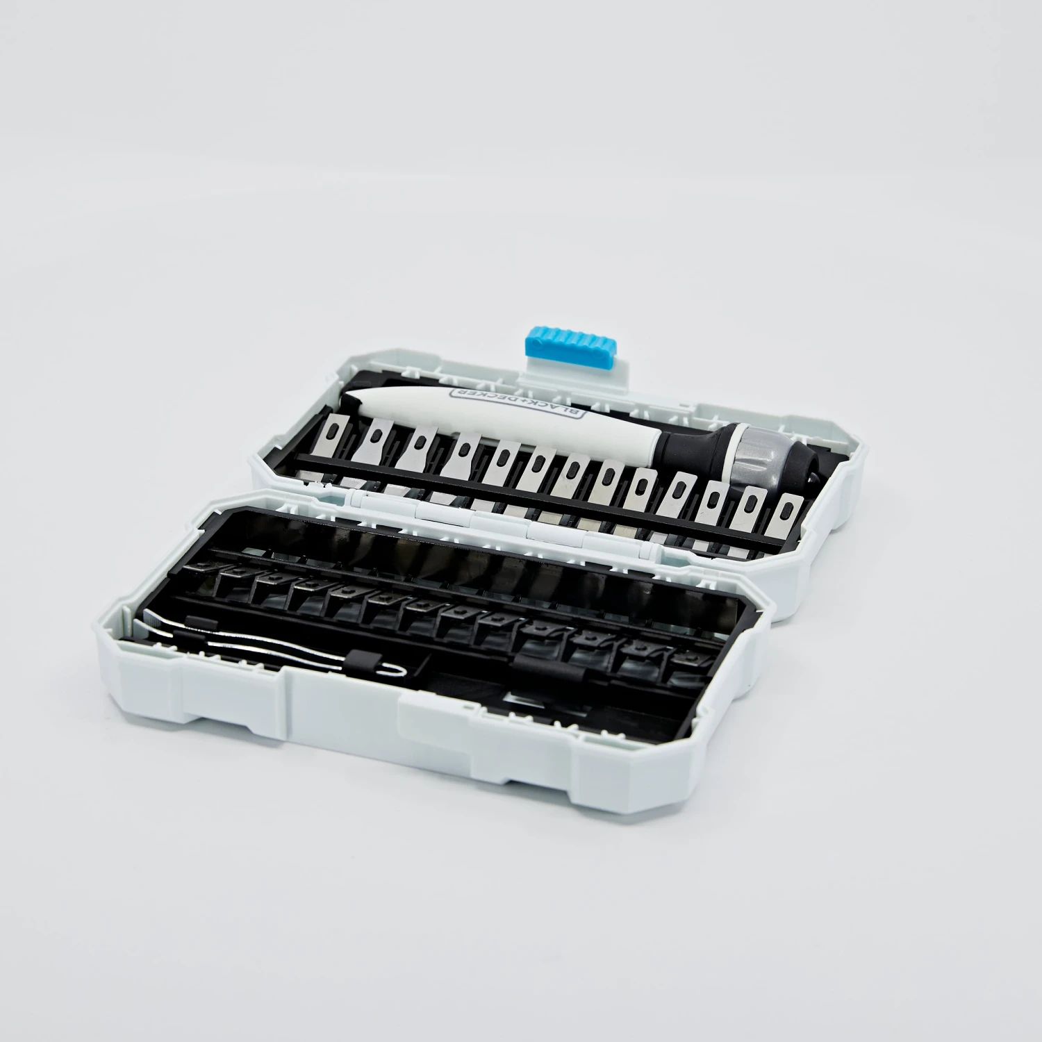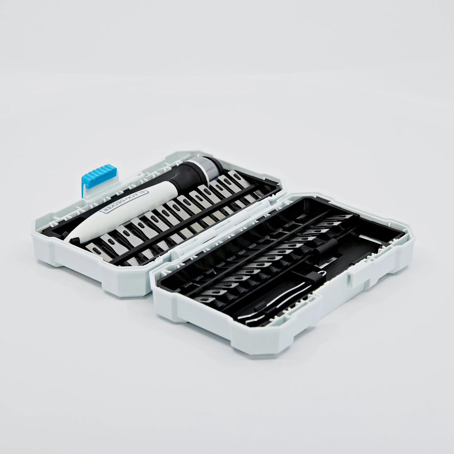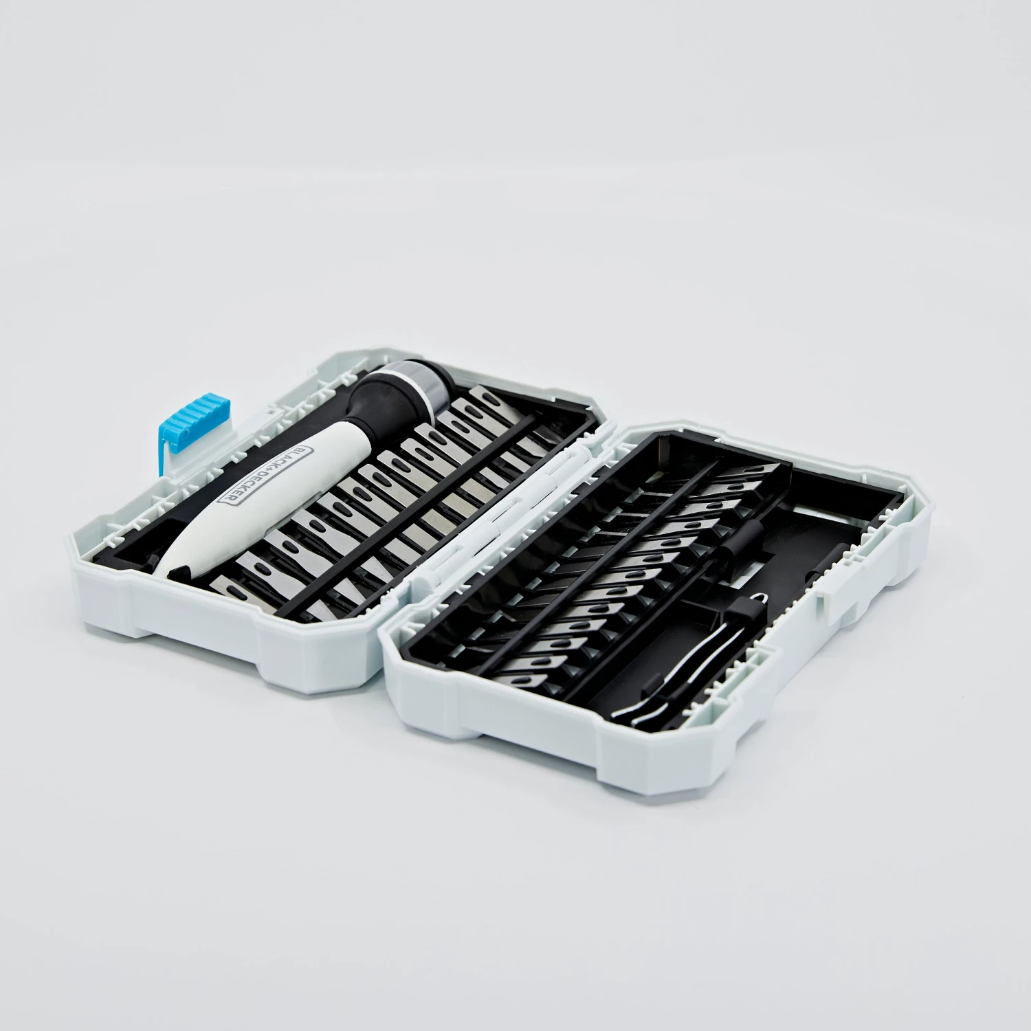 Cut various materials with the BLACK+DECKER® hobby Knife kit. This functional set will fit comfortably in your hand as one of the 26 assorted blades completes accurate cuts.