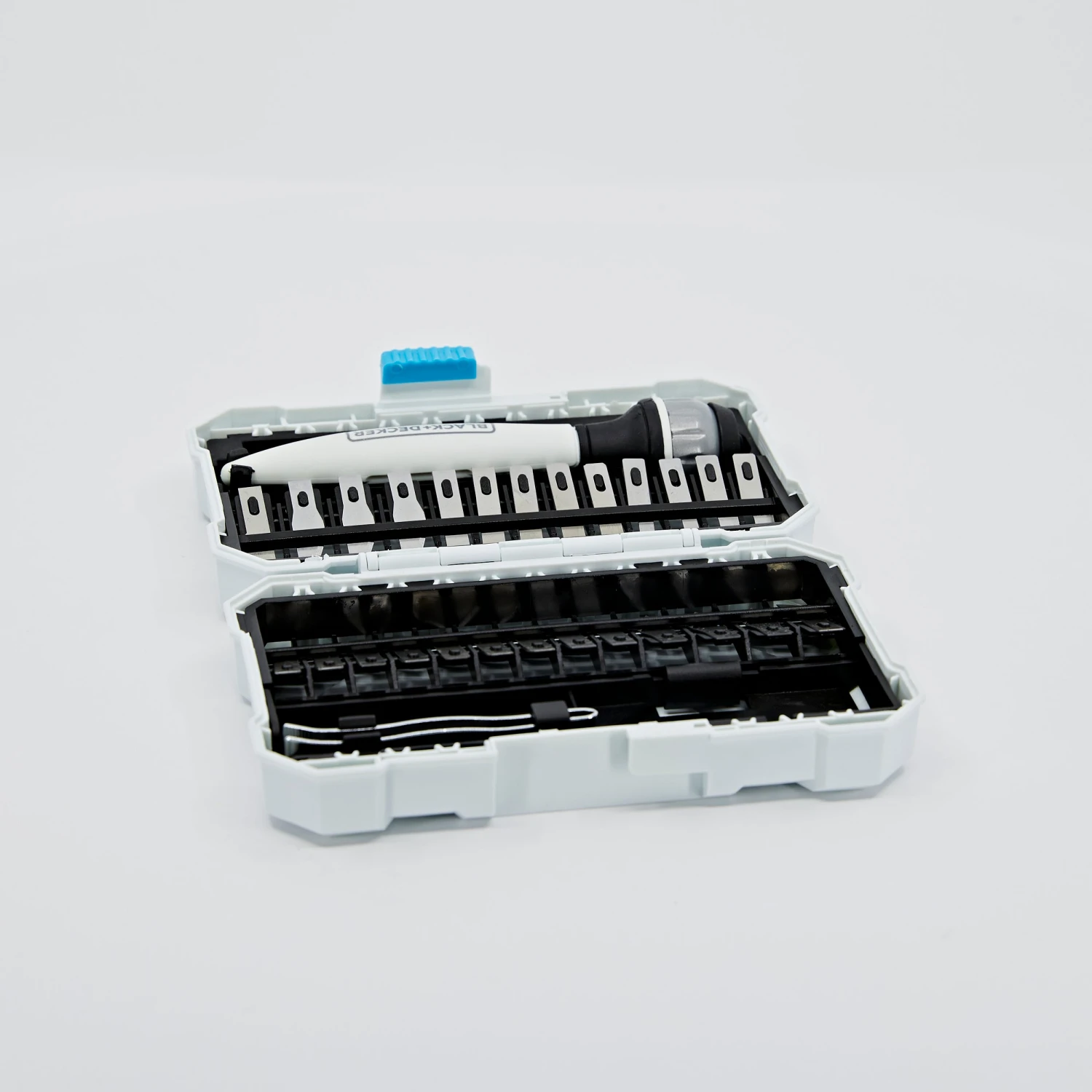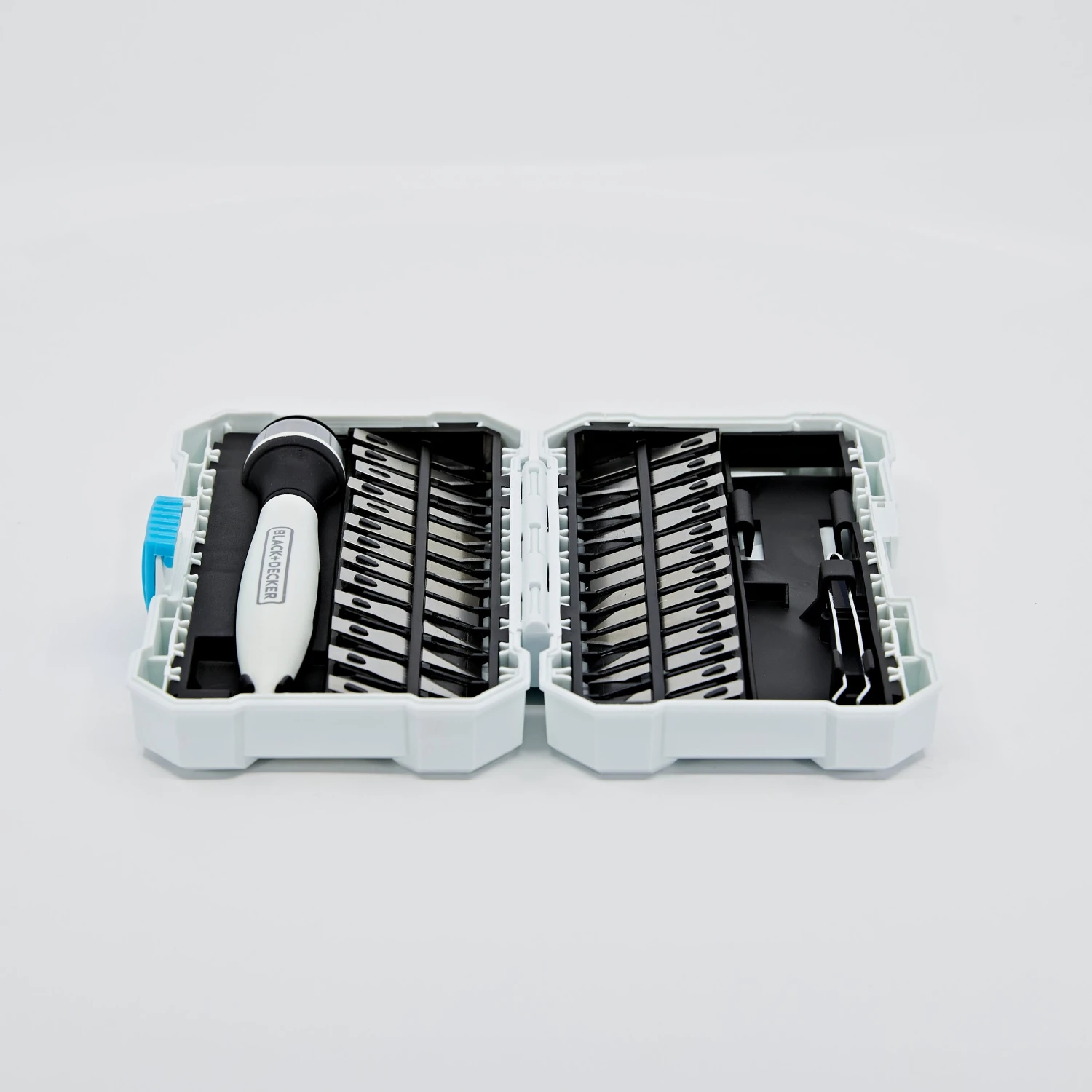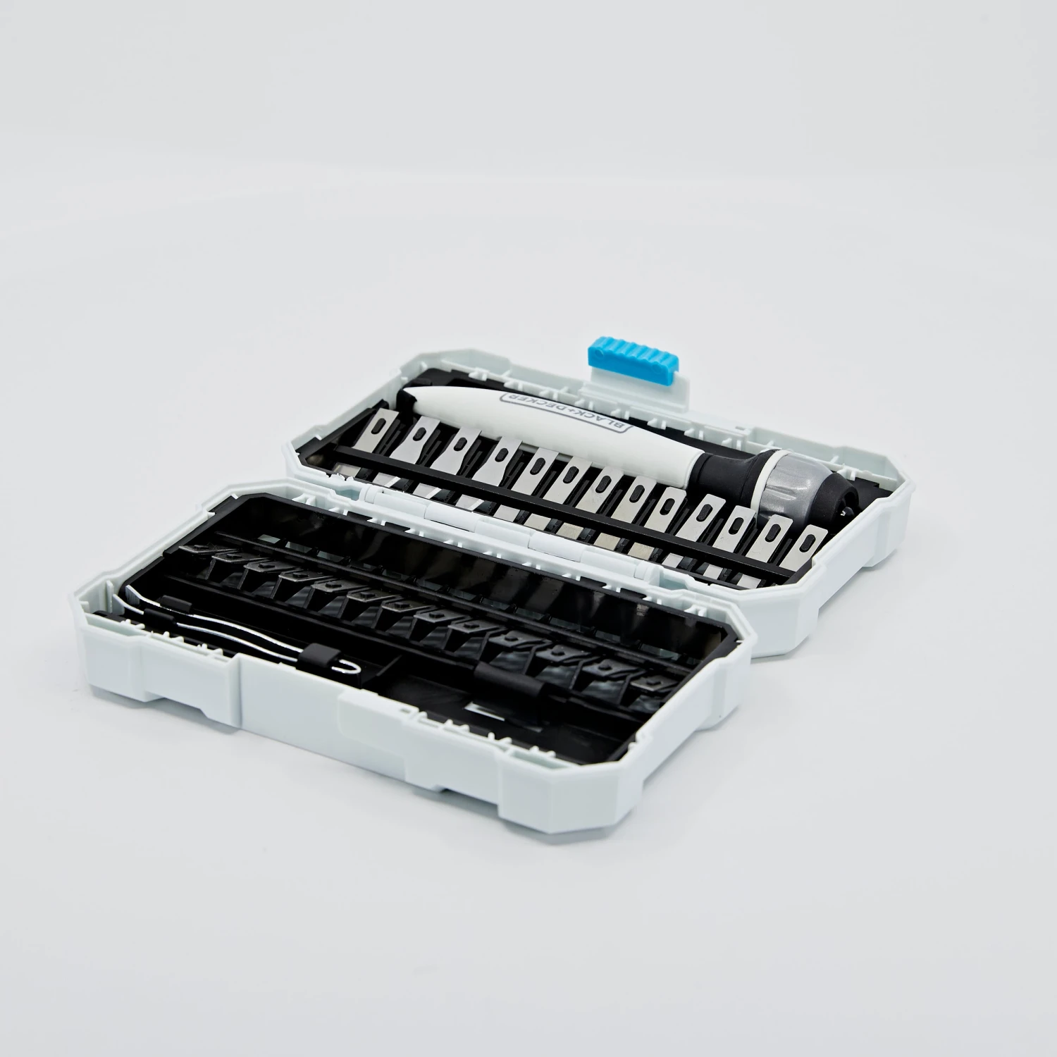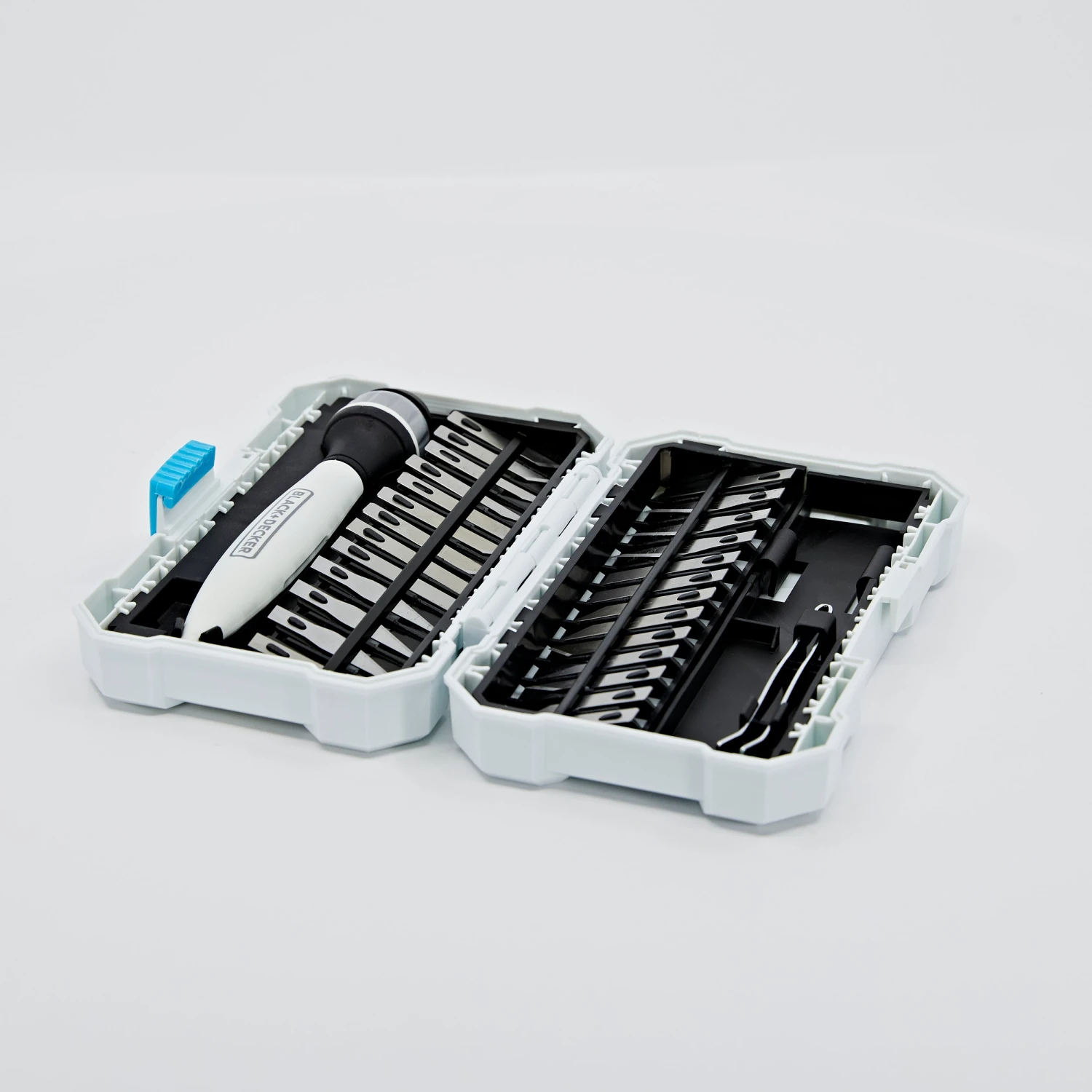 Cut various materials with the BLACK+DECKER® hobby Knife kit. This functional set will fit comfortably in your hand as one of the 26 assorted blades completes accurate cuts.