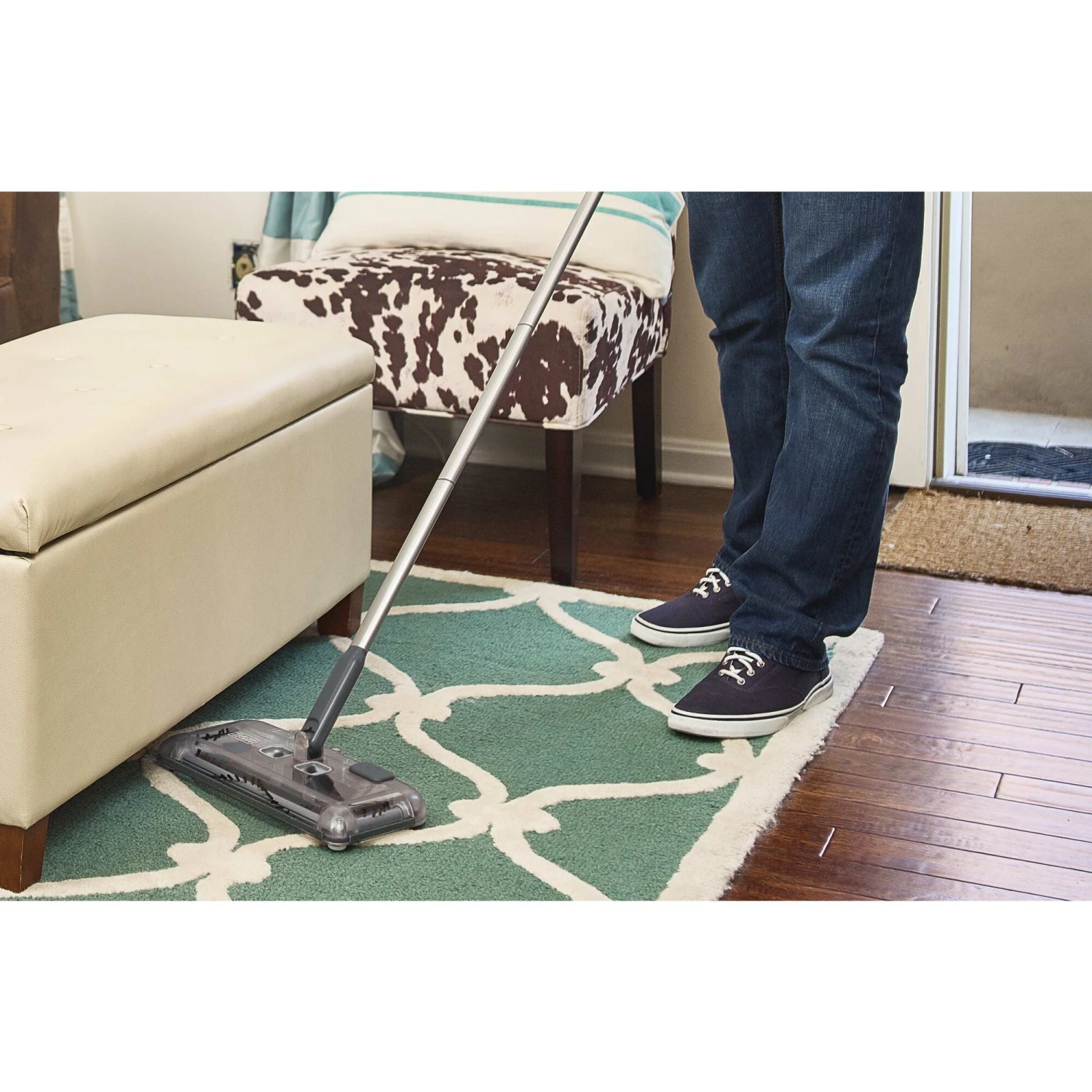 The BLACK+DECKER® 100 minute lithium ion floor sweeper is so light-weight, sleek and maneuverable, you can easily clean one-handed. Just grab it and go – with the lithium ion battery there’s no cord to slow you down.