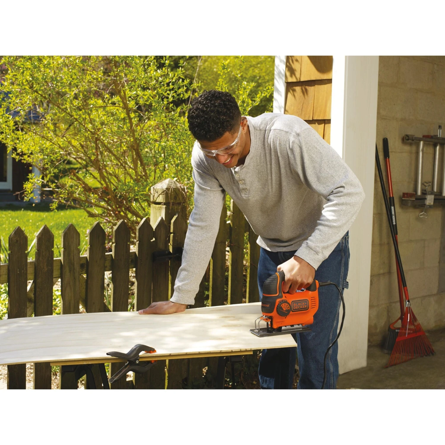 The BLACK+DECKER® Smart Select 5.0 Amp electric jig saw has a variable-speed motor generating up to 3,000 spm (strokes per minute). The adjustable shoe provides a stable cutting platform and can be adjusted to make bevel cuts up to 45 degrees. A wire guard and built-in dust blower are included.