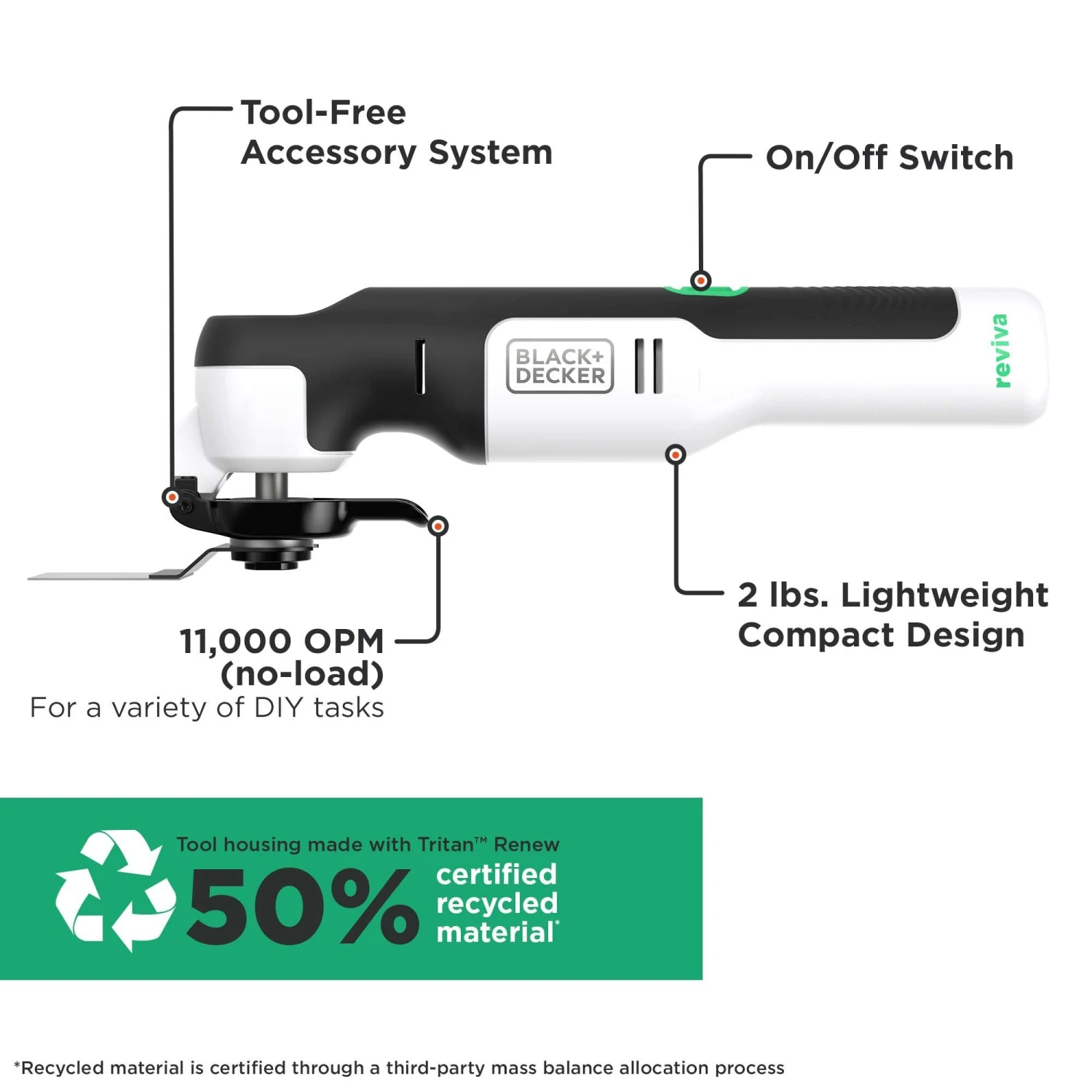 BLACK+DECKER® reviva™ products’ tool housing is made with Tritan™ Renew 50% certified recycled material³. Bundle, save and enjoy tools to build a better planet.